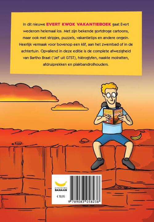 Het nieuwe vakantieboek van Evert Kwok, bomvol cartoons, strips, puzzels, woordgrappen, bananen en andere ongein.