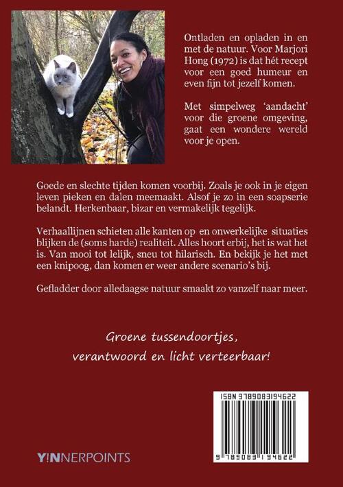 Ontladen en opladen in en met de natuur. Voor Marjori Hong (1972) is dat hét recept voor een goed humeur en even fijn tot jezelf komen. Met simpelweg ‘aandacht’ voor die groene omgeving, gaat een wondere wereld voor je open. Goede en slechte tijden komen voorbij. Zoals je ook in je eigen leven pieken en dalen meemaakt. Alsof je zo in een soapserie belandt. Herkenbaar, bizar en vermakelijk tegelijk. Verhaallijnen schieten alle kanten op en onwerkelijke situaties blijken de (soms harde) realiteit. Alles hoort erbij, het is wat het is. Van mooi tot lelijk, sneu tot hilarisch. En bekijk je het met een knipoog, dan komen er weer andere scenario’s bij. Gefladder door alledaagse natuur smaakt zo vanzelf naar meer.