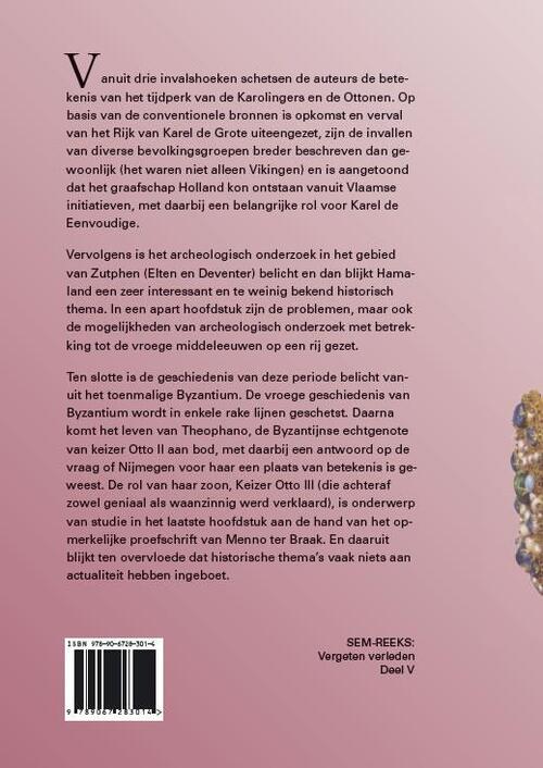 Vanuit drie invalshoeken schetsen de auteurs de betekenis van het tijdperk van de Karolingers en de Ottonen. Op basis van de conventionele bronnen is opkomst en verval van het Rijk van Karel de Grote uiteengezet, zijn de invallen van diverse bevolkingsgroepen breder beschreven dan gewoonlijk (het waren niet alleen Vikingen) en is aangetoond dat het graafschap Holland kon ontstaan vanuit Vlaamse initiatieven, met daarbij een belangrijke rol voor Karel de Eenvoudige. Vervolgens is het archeologisch onderzoek in het gebied van Zutphen (Elten en Deventer) belicht en dan blijkt Hamaland een zeer interessant en te weinig bekend historisch thema. In een apart hoofdstuk zijn de problemen, maar ook de mogelijkheden van archeologisch onderzoek met betrekking tot de vroege middeleeuwen op een rij gezet. Ten slotte is de geschiedenis van deze periode belicht vanuit het toenmalige Byzantium. De vroege geschiedenis van Byzantium wordt in enkele rake lijnen geschetst. Daarna komt het leven van Theophano, de Byzantijnse echtgenote van keizer Otto II aan bod, met daarbij een antwoord op de vraag of Nijmegen voor haar een plaats van betekenis is geweest. De rol van haar zoon, Keizer Otto III (die achteraf zowel geniaal als waanzinnig werd verklaard), is onderwerp van studie in het laatste hoofdstuk aan de hand van het opmerkelijke proefschrift van Menno ter Braak. En daaruit blijkt ten overvloede dat historische thema's vaak niets aan actualiteit hebben ingeboet.