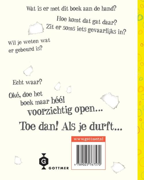 Pas op! Dit boek is niet wat het lijkt! Er zit iets in wat er niet hoort. Iets wat bijt... Het is een supergrote krokodil! Pas op! Het verhaal begint heel lief, met een lelijk klein eendje dat anders is dan zijn broertjes en zusjes, maar dan wordt al snel duidelijk dat er iets in het boek zit wat er niet hoort. Iets wat bijt... Het is een supergrote krokodil! Eerst begint hij de letters op te eten en dan neemt hij zelfs een hap uit het omslag... Die engerd moet zo snel mogelijk het boek uit. Maar hoe? Een hilarisch verhaal dat kleuters uitnodigt om mee te denken en mee te doen. Dit boek is uitverkozen tot een van de 10 mooiste prentenboeken van 2015 en is nu ook verkrijgbaar als kartonboekje!
