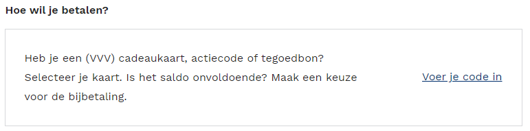 Vul dan het kaartnummer en pincode in. Staat er onvoldoende saldo op? Dan kun je het resterende bedrag aanvullen via iDEAL of creditcard.